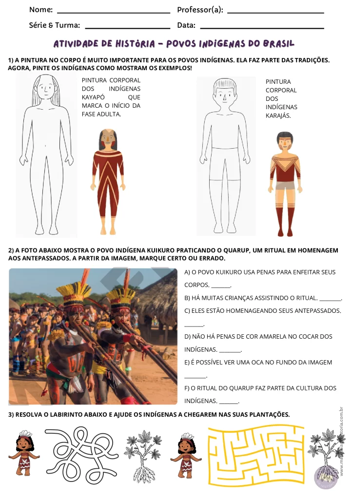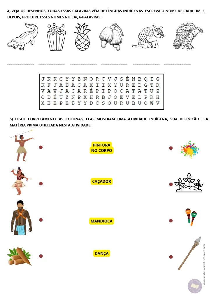 Resumo: Atividades adaptadas sobre os povos indígenas brasileiros. São duas páginas prontas para imprimir e aplicar com os estudantes da Educação Especial.